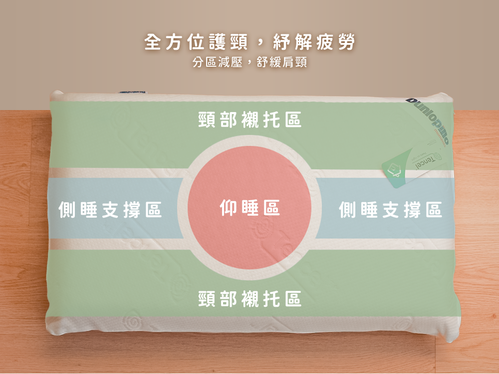.給予頭部充分舒適的支撐,引導頸椎於生理曲線正確位置休息。